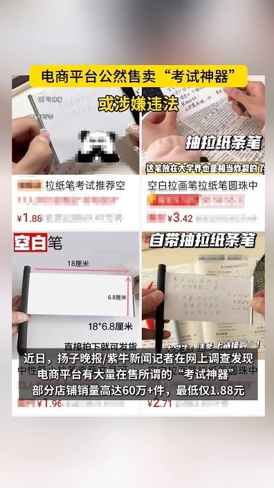 记者注意到,这款“考试神器”有近3000好评,有买家留言“非常的好用”“特别适合,考试的时候带进去”“今天直接传纸条被发现了,下次试试这个”。